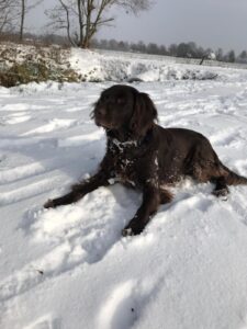 Sneeuw is prachtig! Lekker rennen, ravotten … iedere hond vindt het geweldig! Helaas gaat sneeuw vaak vastzitten in de vacht en vormt daar bolletjes die in ijsballetjes kunnen veranderen. Aan de poten en onder de voeten is dat lastig en pijnlijk. Houdt het haar daar dus kort, dan blijft er minder in hangen. Zie de pagina vachtverzorging hoe je dat zelf kunt doen. De voeten insmeren met zuurvrije vaseline of uierzalf voorkomt ook dat sneeuw blijft plakken. Komt je Stabij toch vol ijsbolletjes te zitten, probeer ze er dan niet af te trekken, want dat is zeer pijnlijk. Knijp ze fijn of smelt ze in je hand, of bij thuiskomst in lauw water.Sneeuwballen happen is leuk! Een beetje sneeuw eten kan geen kwaad, maar voorkom dat je hond te veel sneeuw binnenkrijgt. Hij kan daardoor ziek worden en gaan overgeven, het kan buikpijn veroorzaken en dagenlange diarree. IJswater heeft hetzelfde effect. Voorkom dat je hond te veel binnenkrijgt.